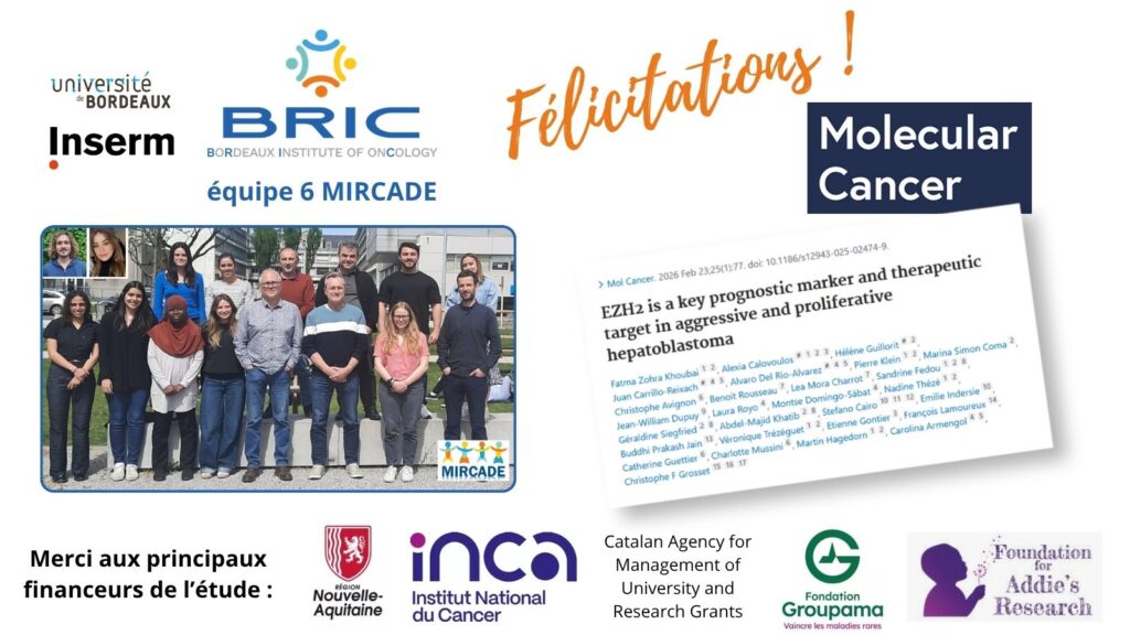 Ces travaux publiés dans un journal scientifique de renom témoignent de la qualité des travaux menés par nos équipes au sein de l’Institut d’Oncologie de Bordeaux et de leur dynamisme, et démontrent notre engagement dans le développement d’approches innovantes en oncologie pédiatrique.